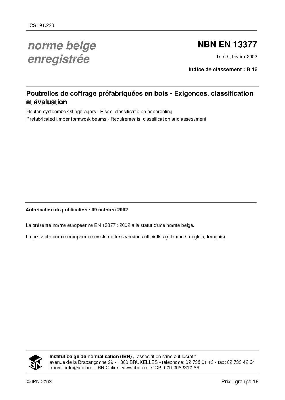 | Publisher | Bureau de Normalisation Belge (NBN) |