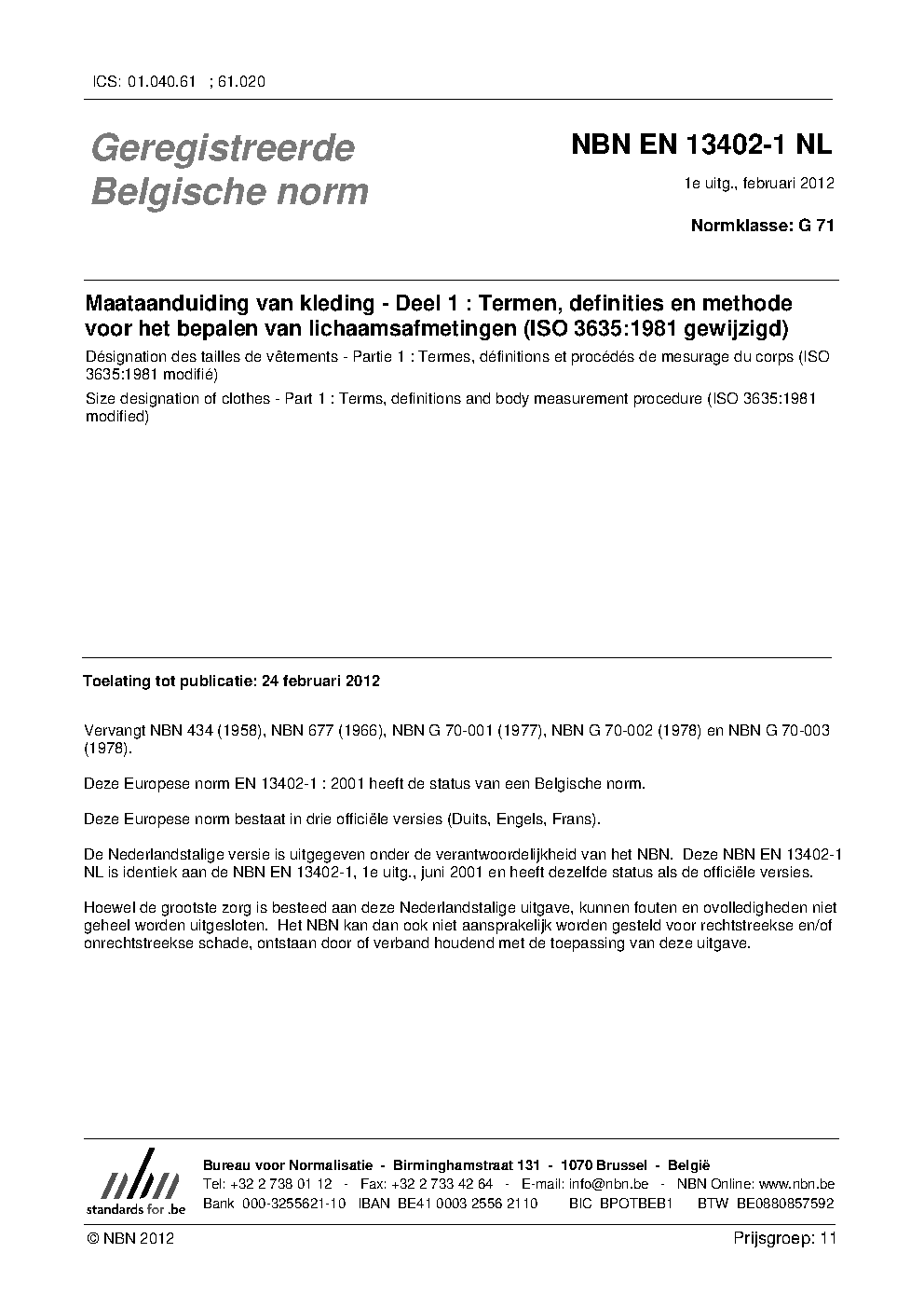 NBN EN 13402-1 NL:2012