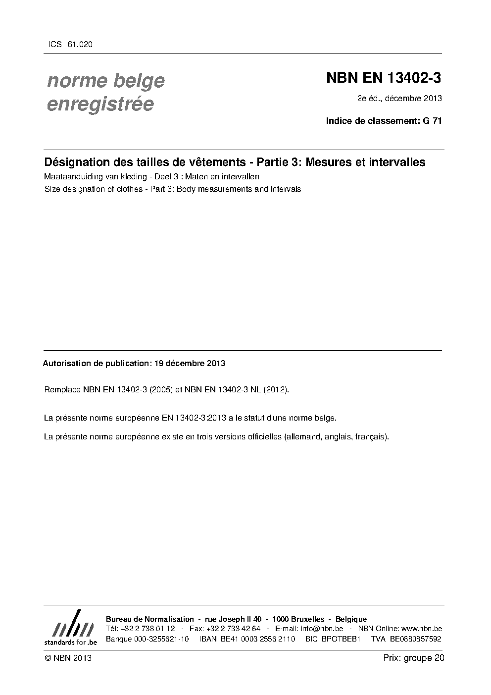 | Publisher | Bureau de Normalisation Belge (NBN) |