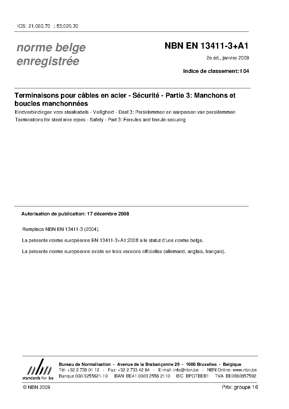 | Publisher | Bureau de Normalisation Belge (NBN) |