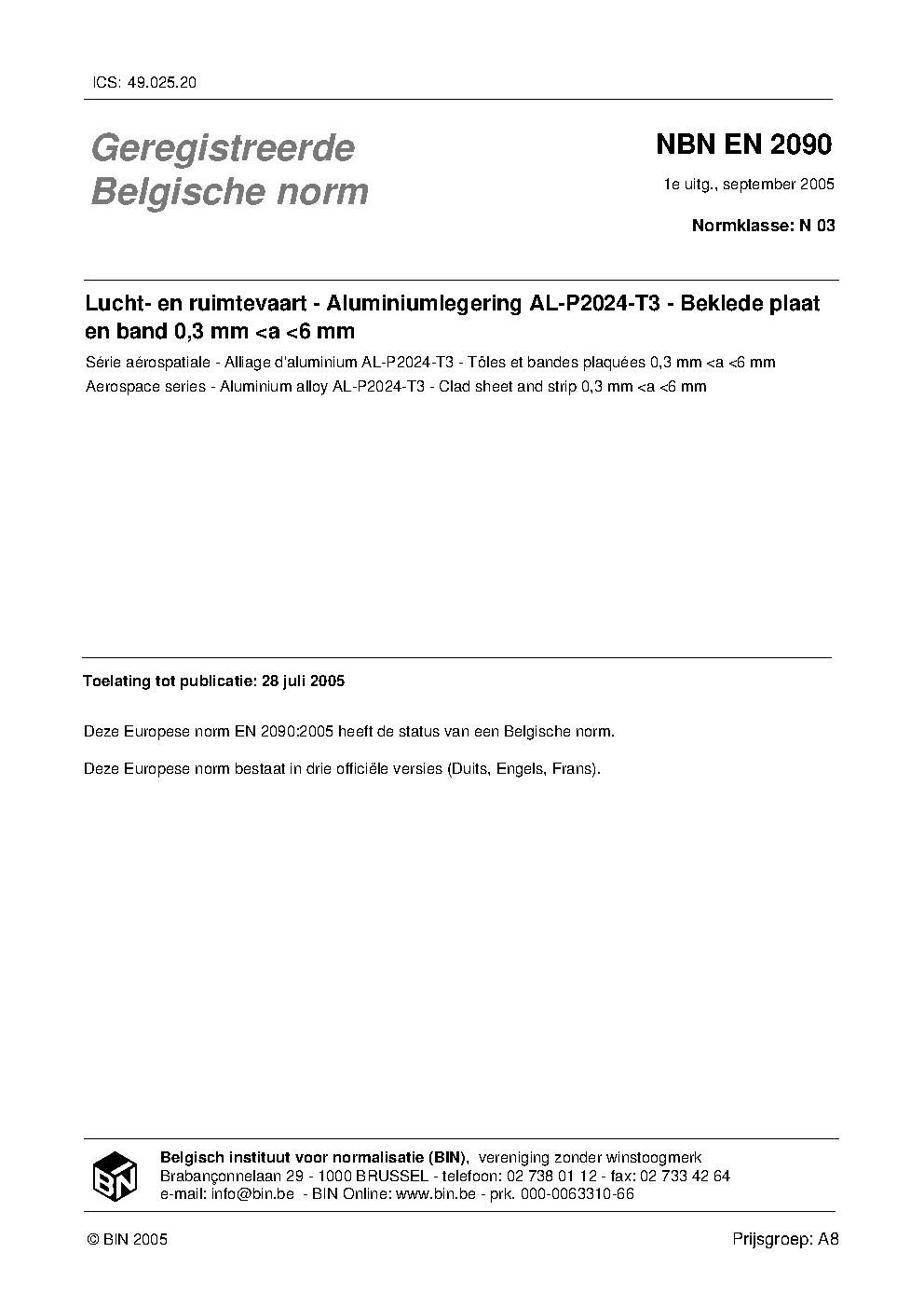 | Publisher | Bureau de Normalisation Belge (NBN) |