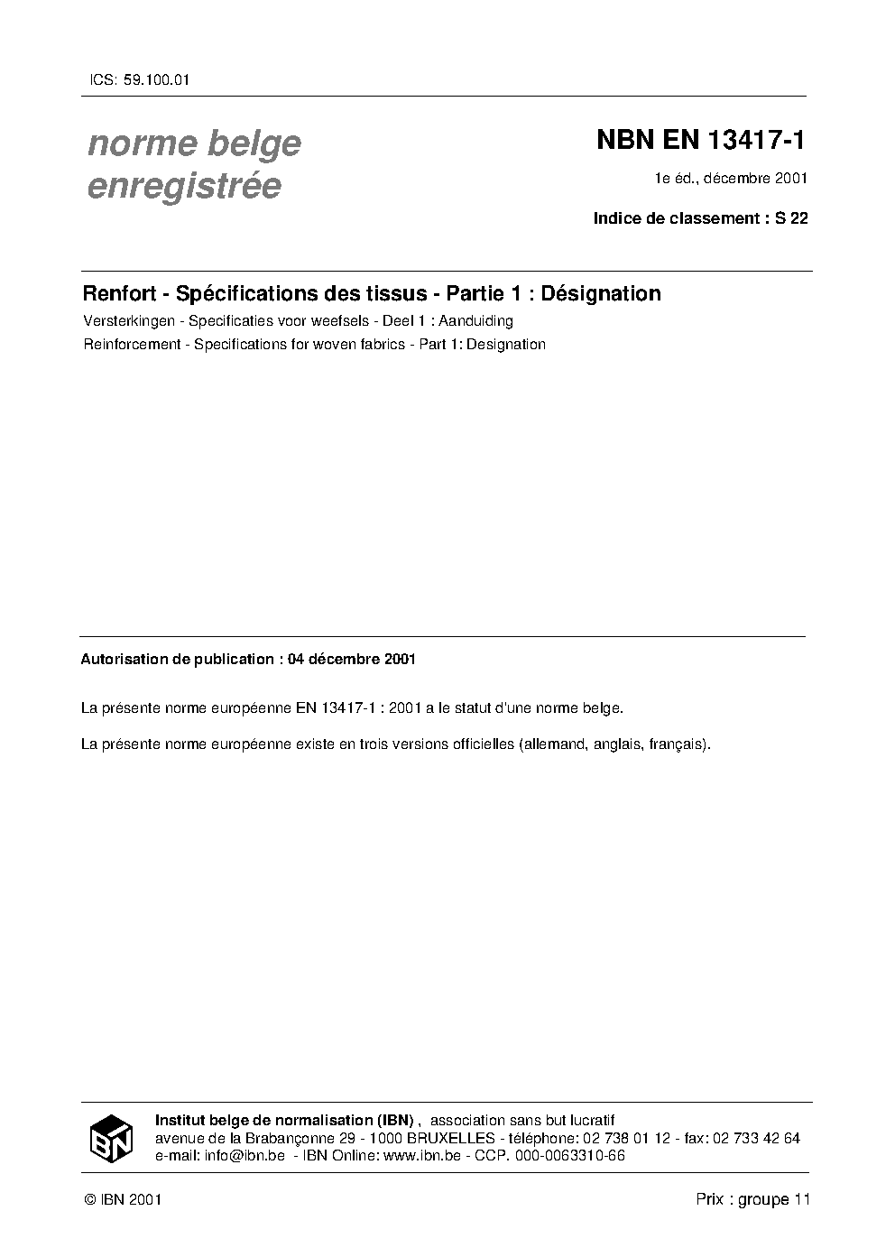 | Publisher | Bureau de Normalisation Belge (NBN) |