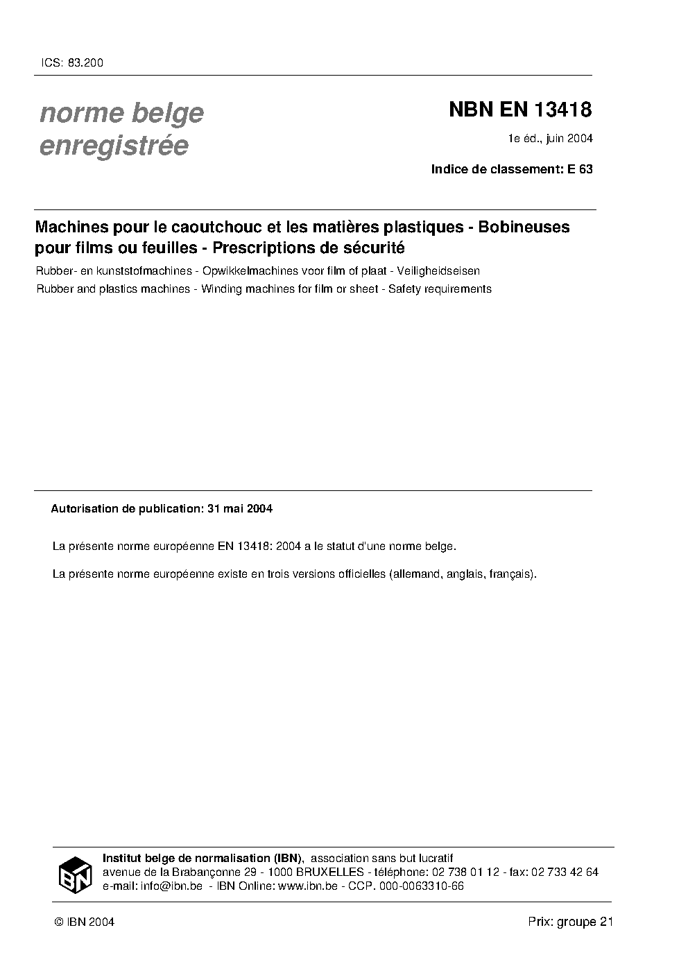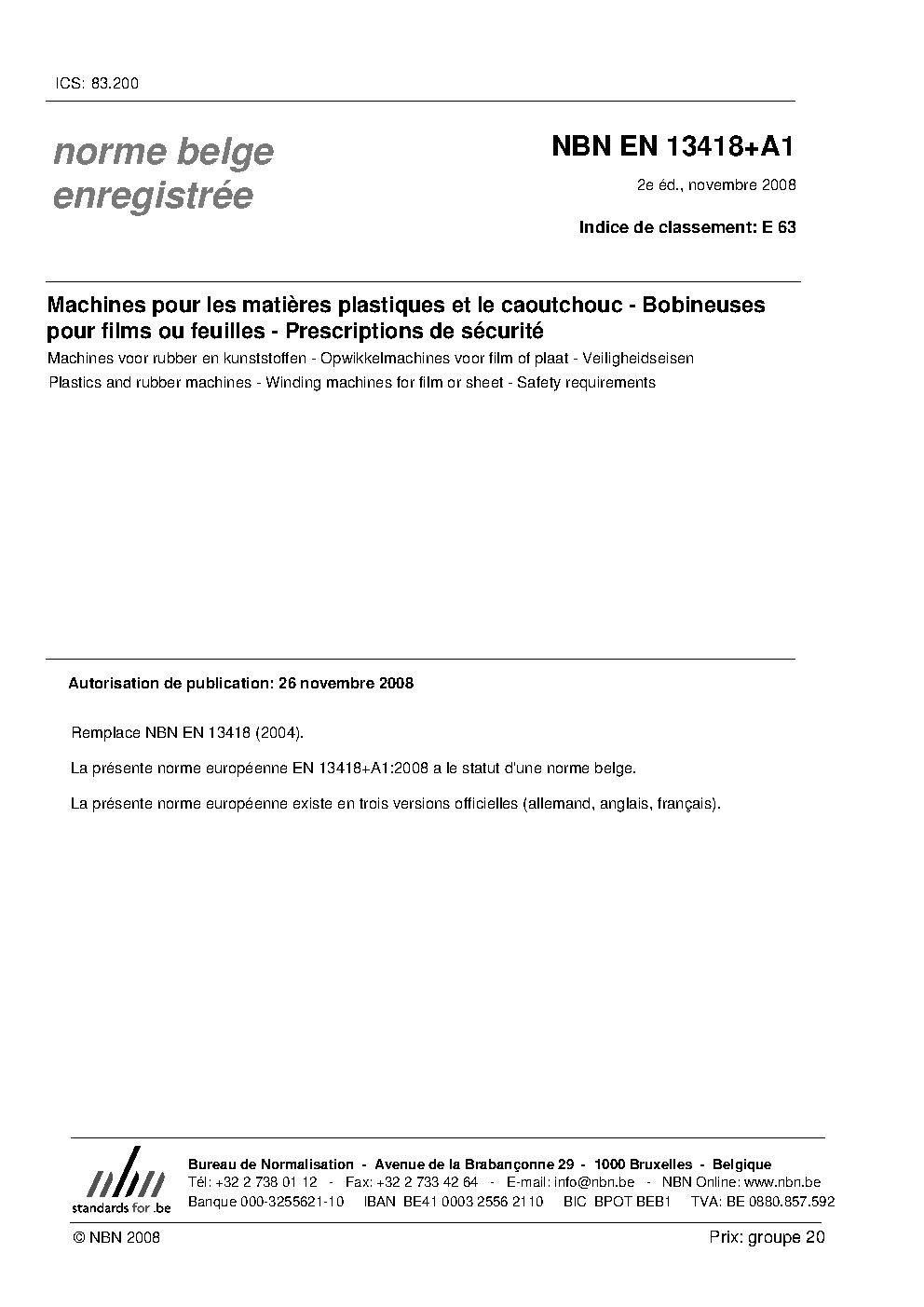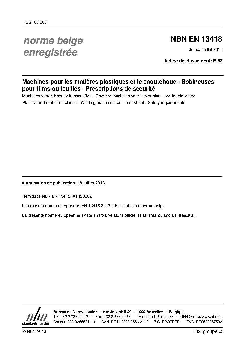 | Publisher | Bureau de Normalisation Belge (NBN) |