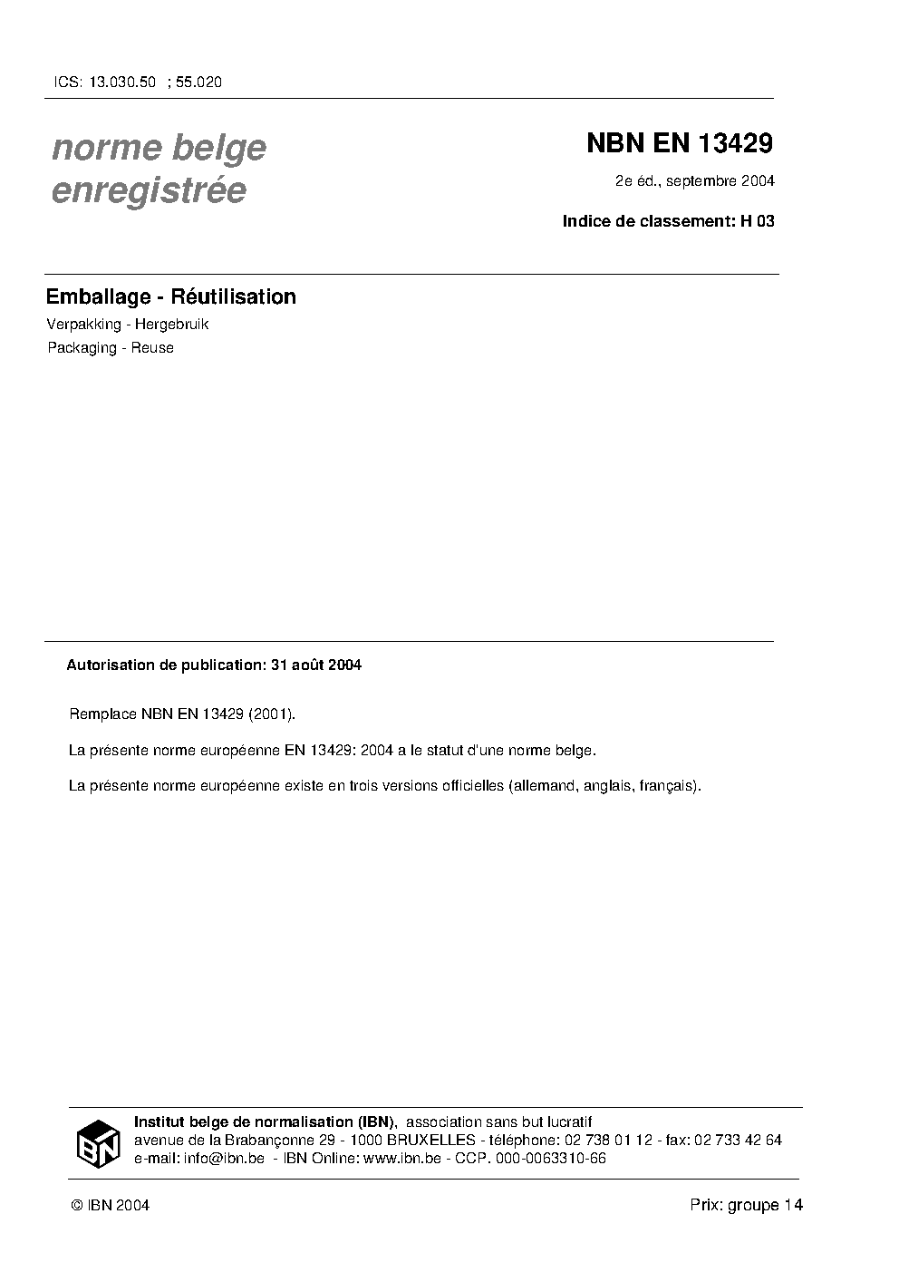 | Publisher | Bureau de Normalisation Belge (NBN) |