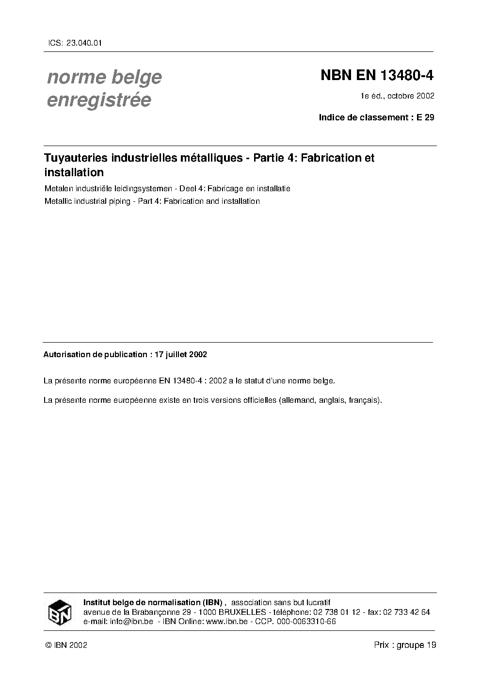 | Publisher | Bureau de Normalisation Belge (NBN) |