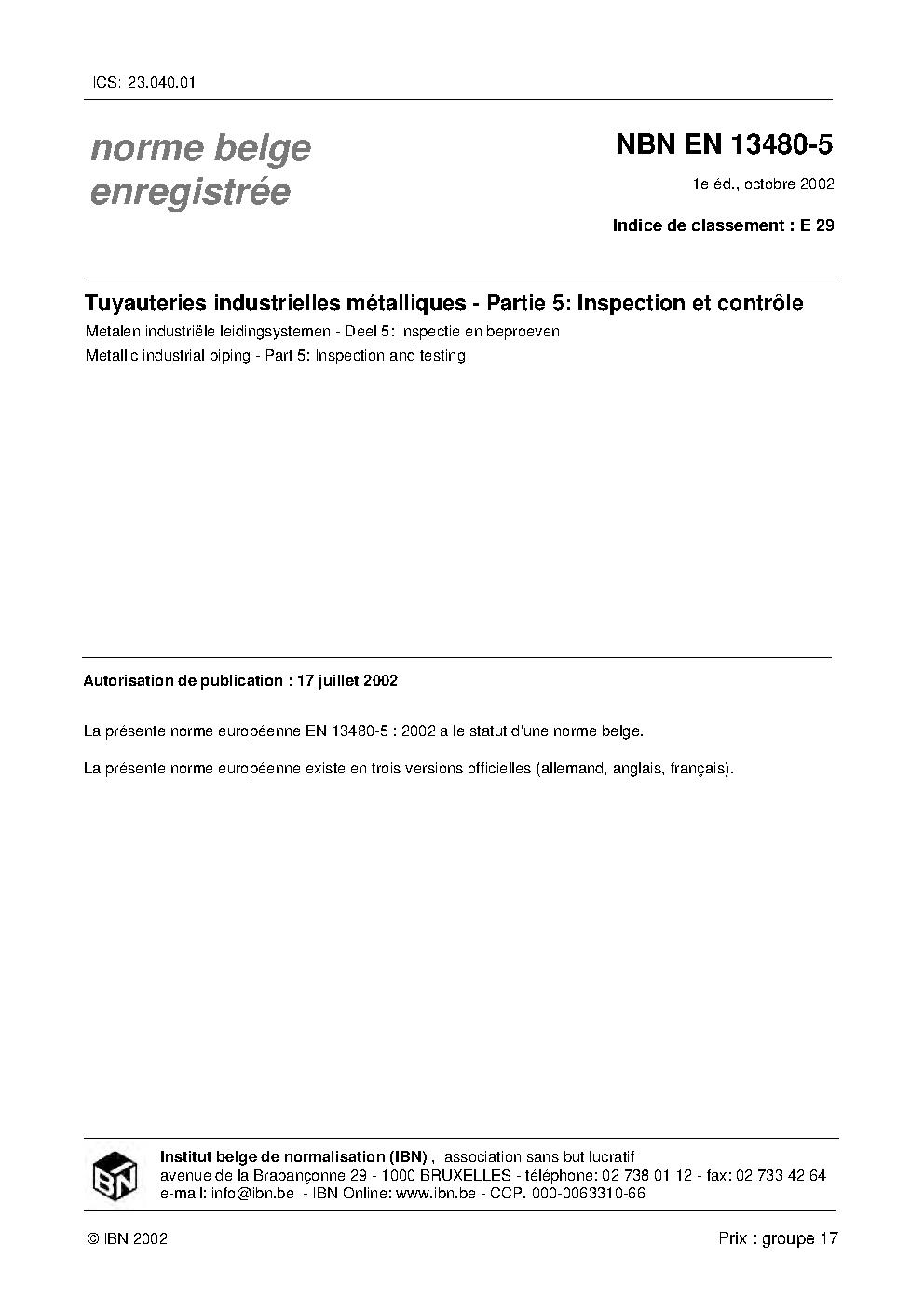 NBN EN 13480-5:2002