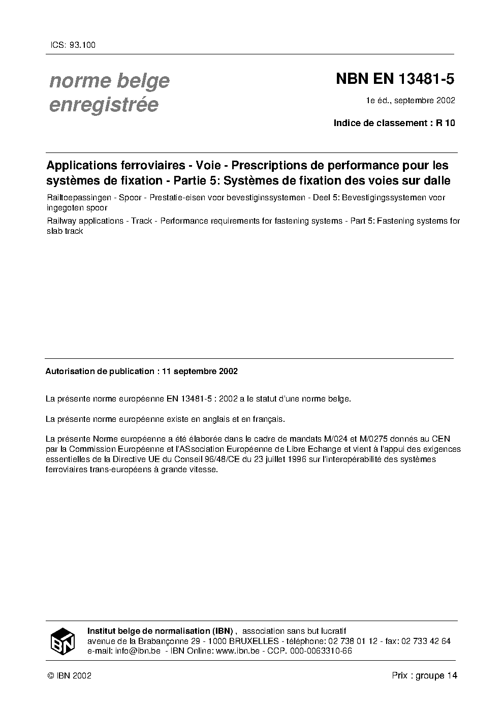 | Publisher | Bureau de Normalisation Belge (NBN) |