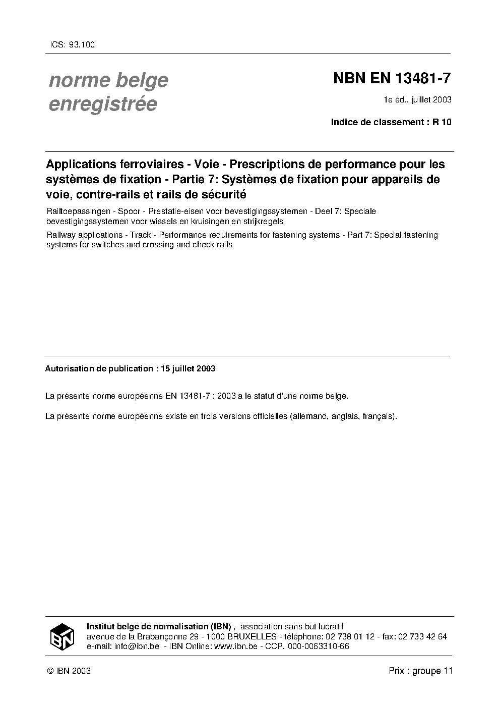 NBN EN 13481-7:2003