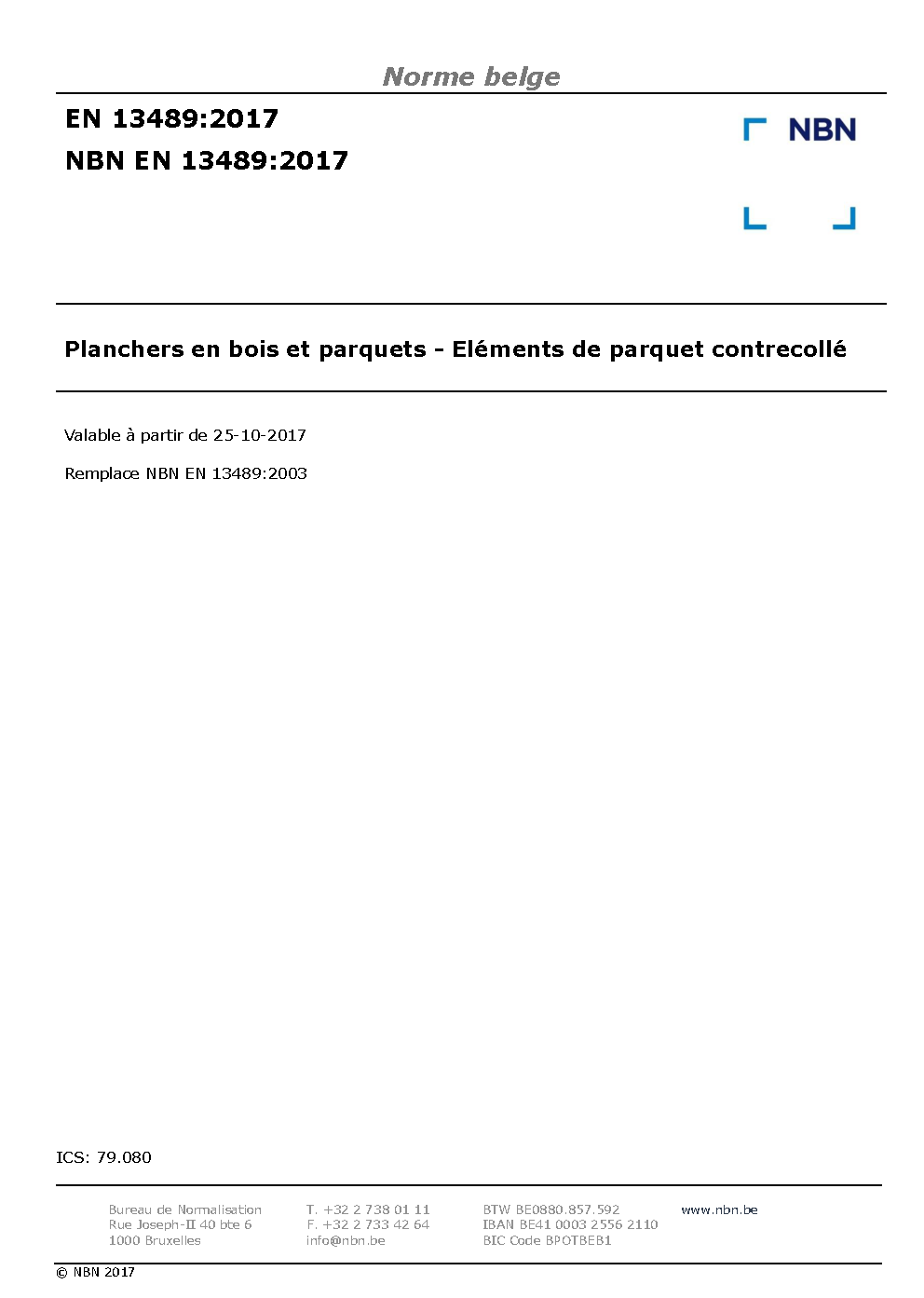 | Publisher | Bureau de Normalisation Belge (NBN) |