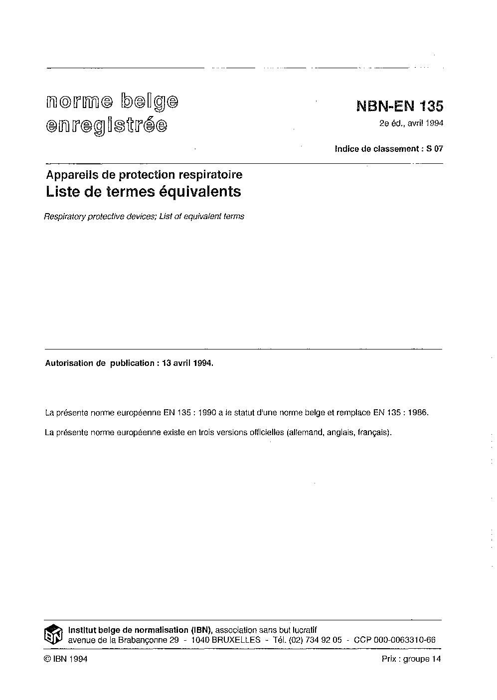 | Publisher | Bureau de Normalisation Belge (NBN) |