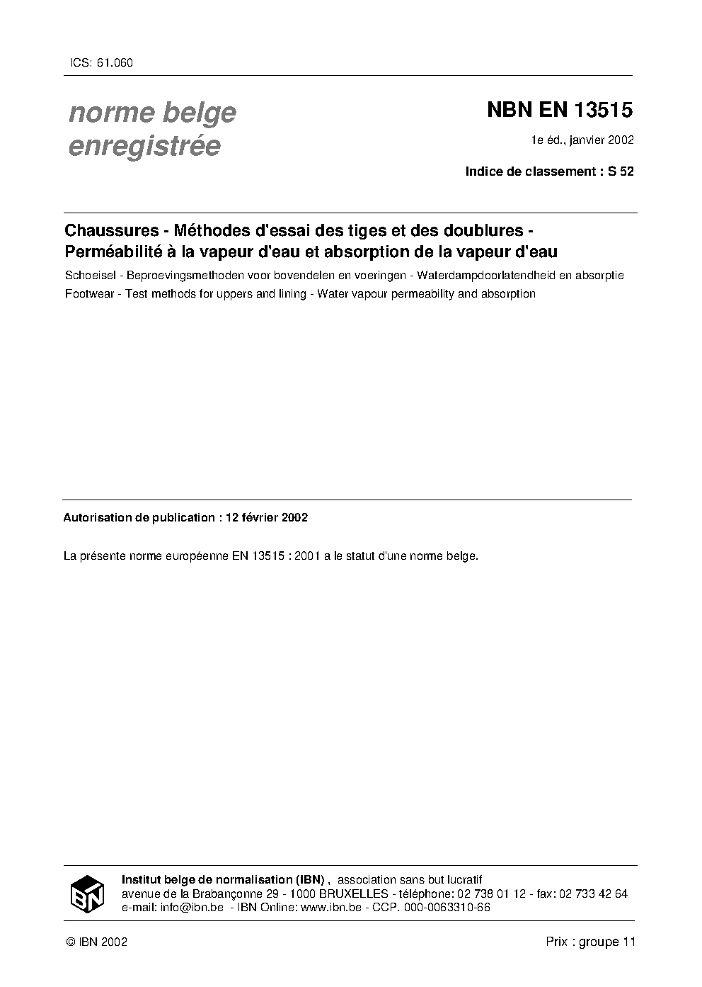 | Publisher | Bureau de Normalisation Belge (NBN) |