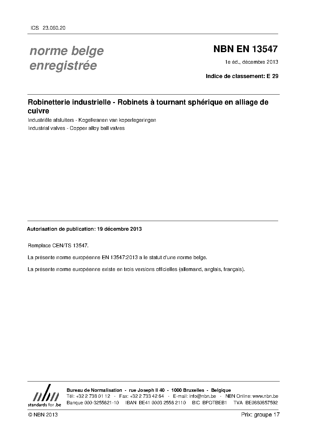 | Publisher | Bureau de Normalisation Belge (NBN) |
