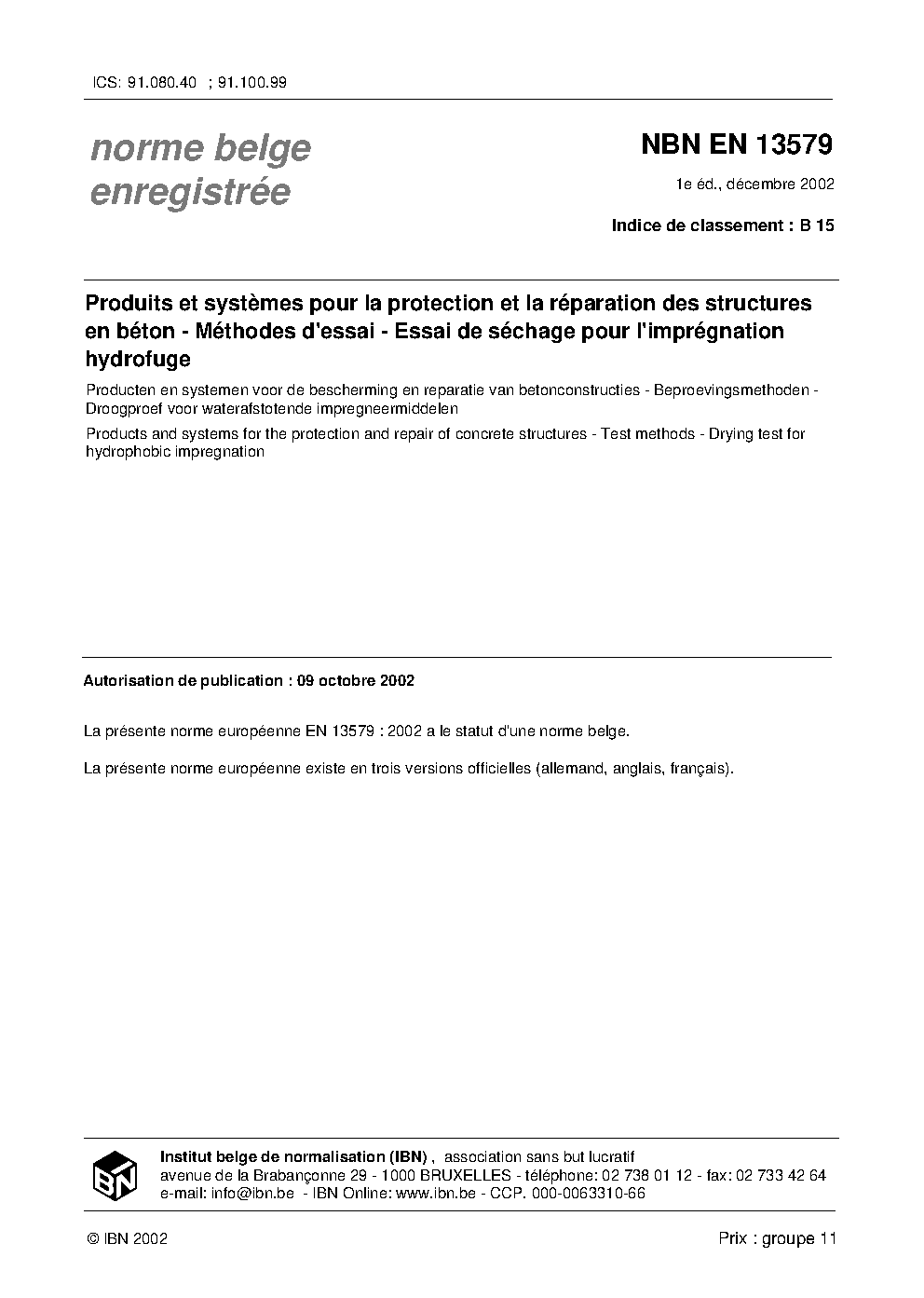| Publisher | Bureau de Normalisation Belge (NBN) |