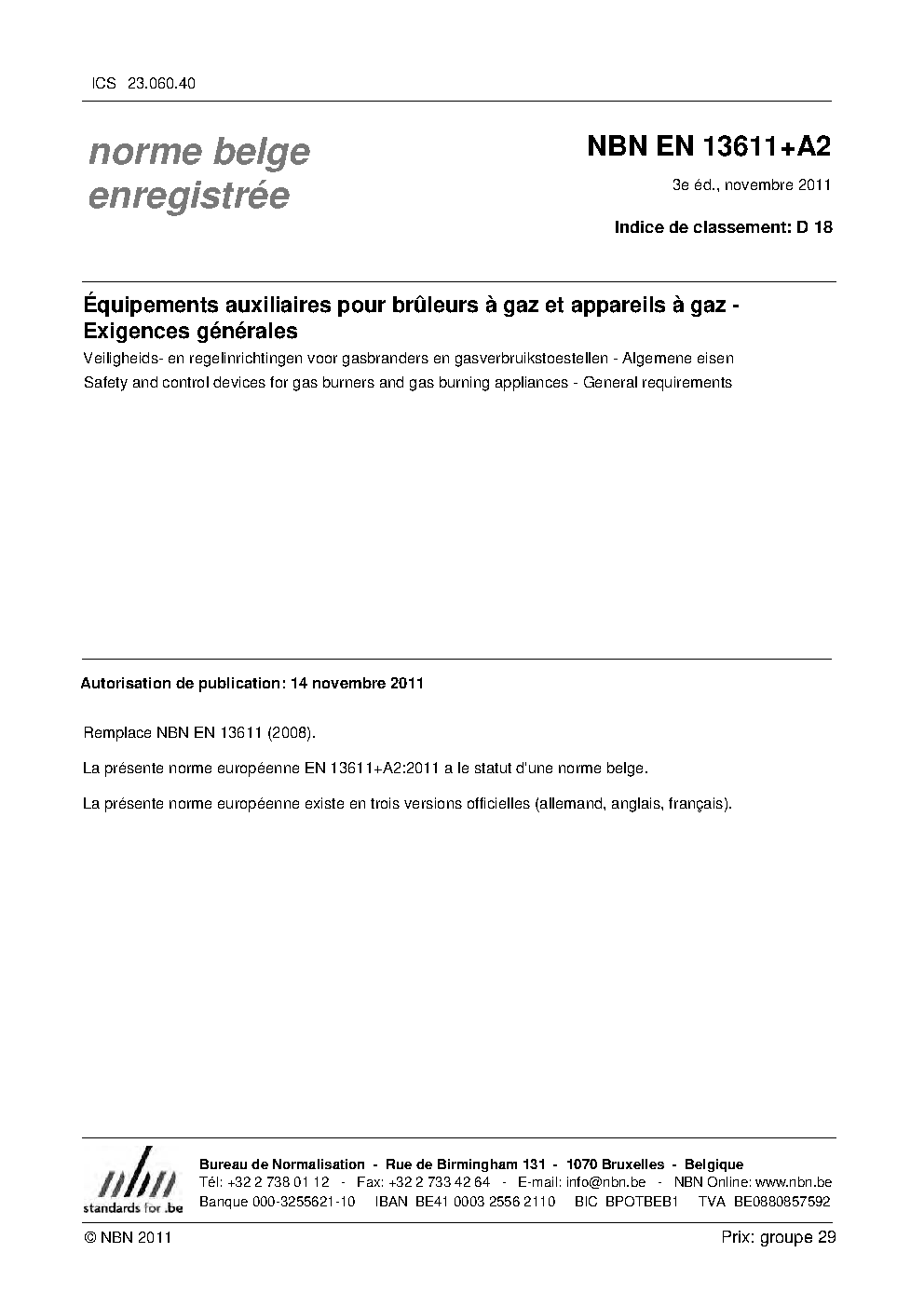 NBN EN 13611:2008