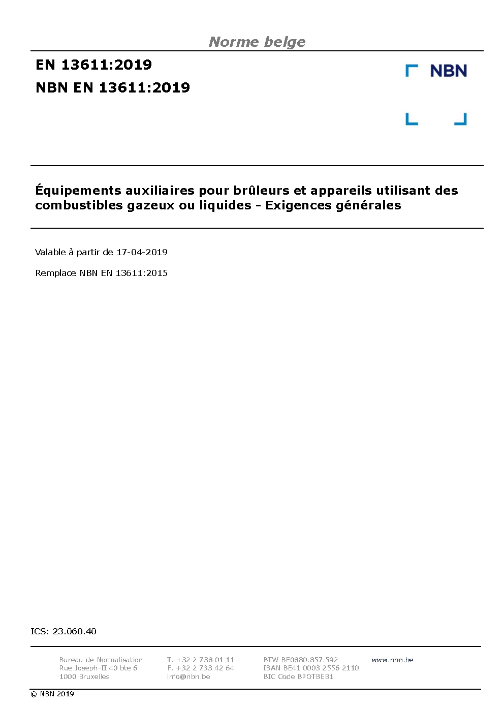 | Publisher | Bureau de Normalisation Belge (NBN) |