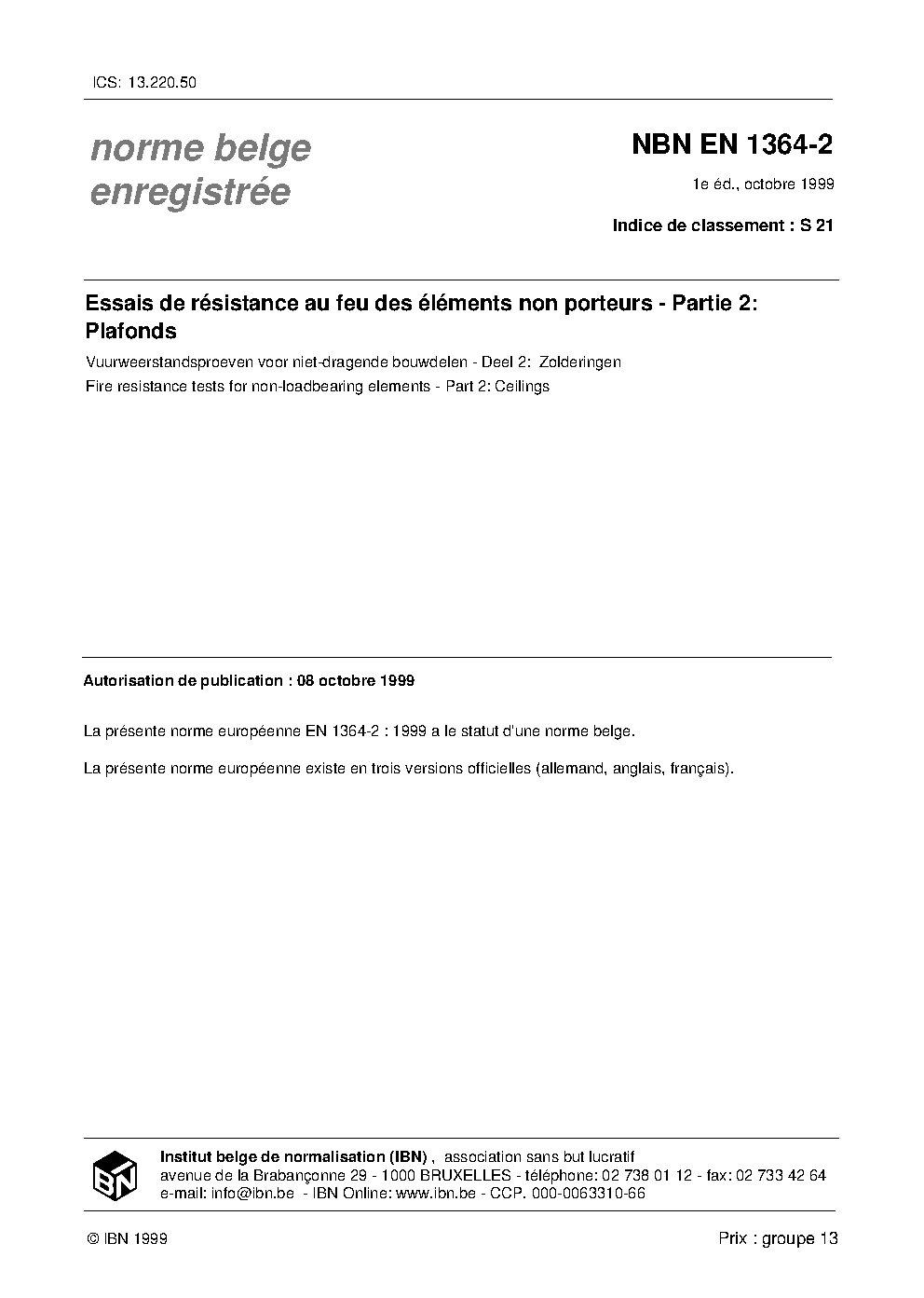 | Publisher | Bureau de Normalisation Belge (NBN) |