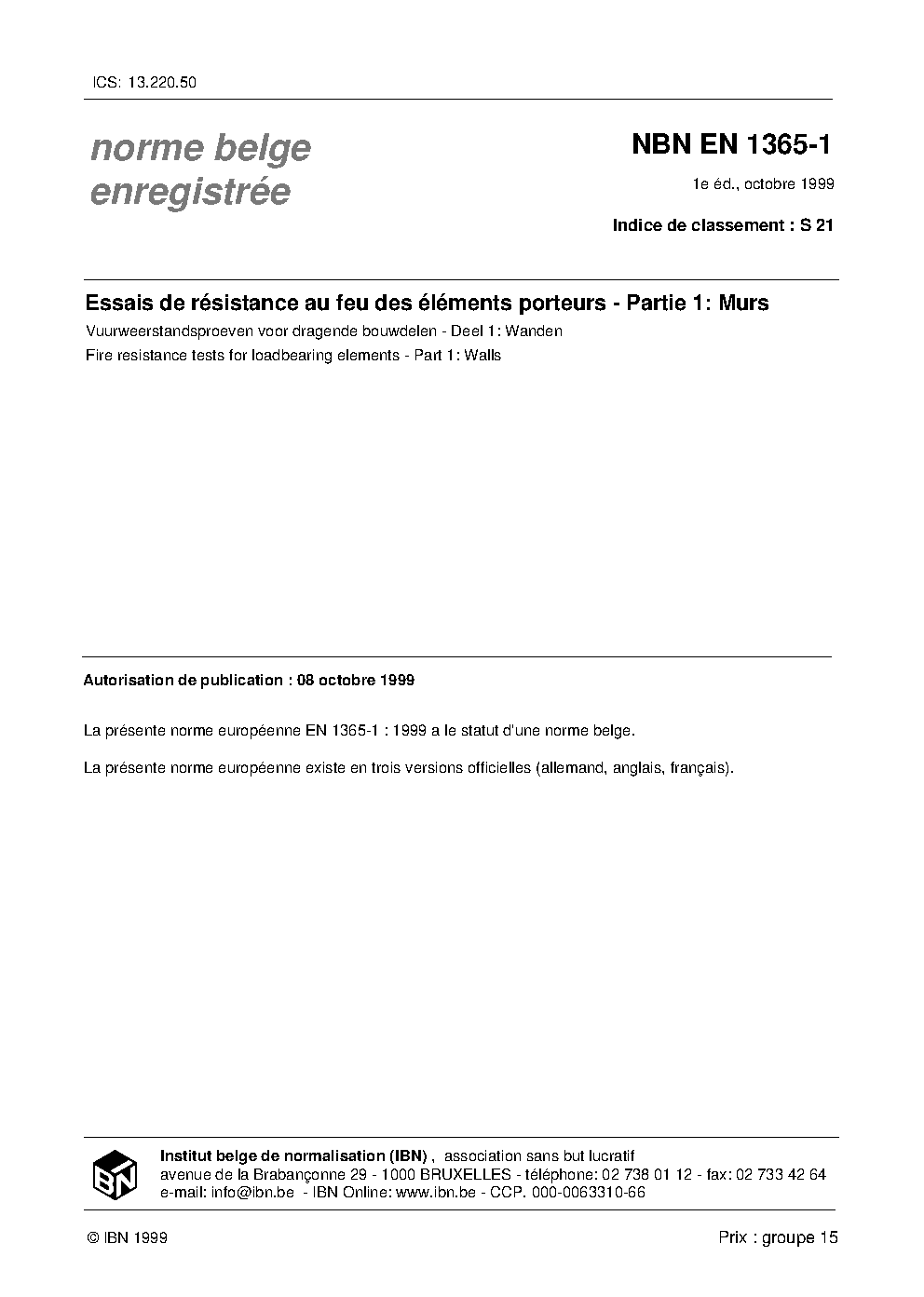 | Publisher | Bureau de Normalisation Belge (NBN) |