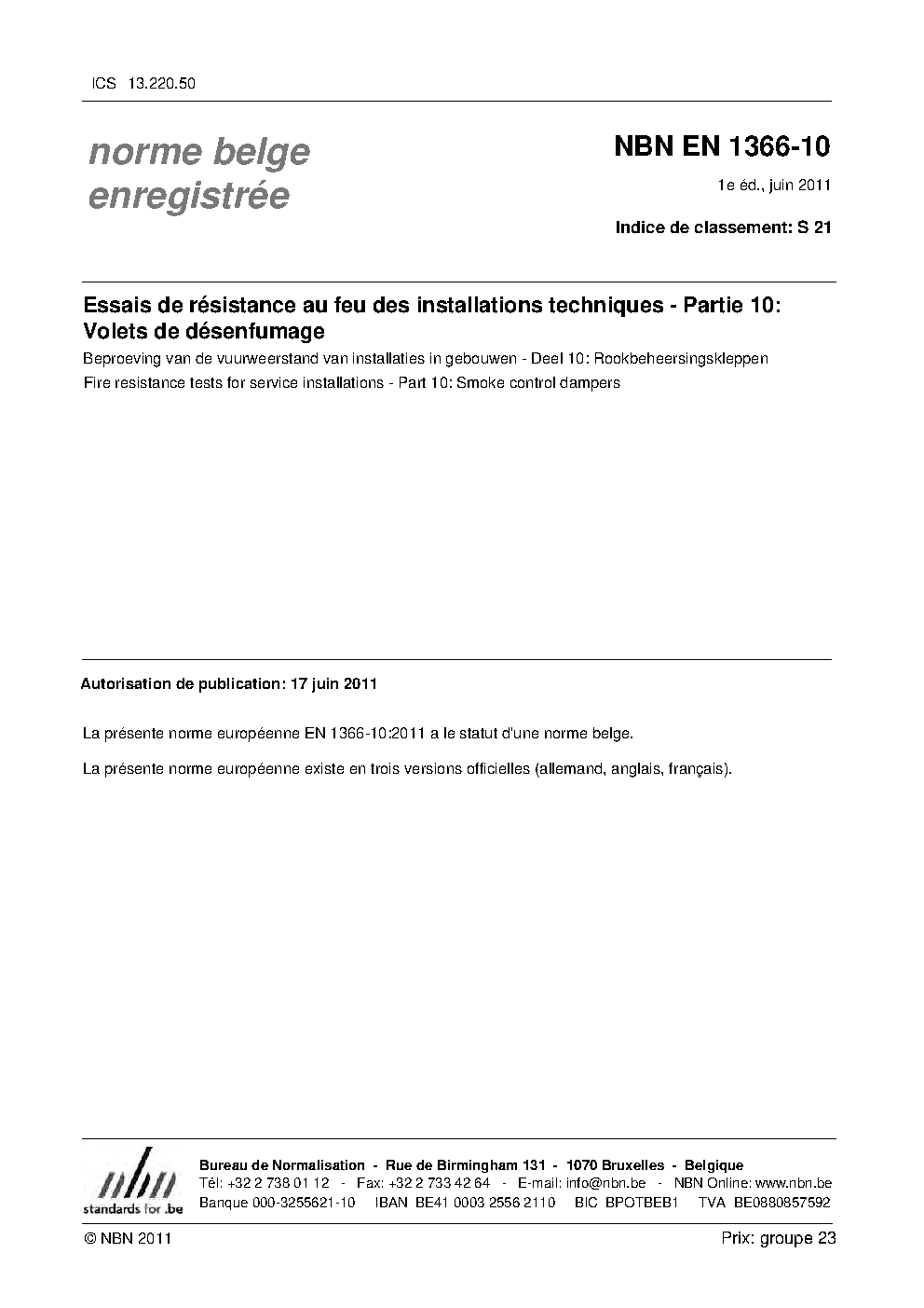 | Publisher | Bureau de Normalisation Belge (NBN) |