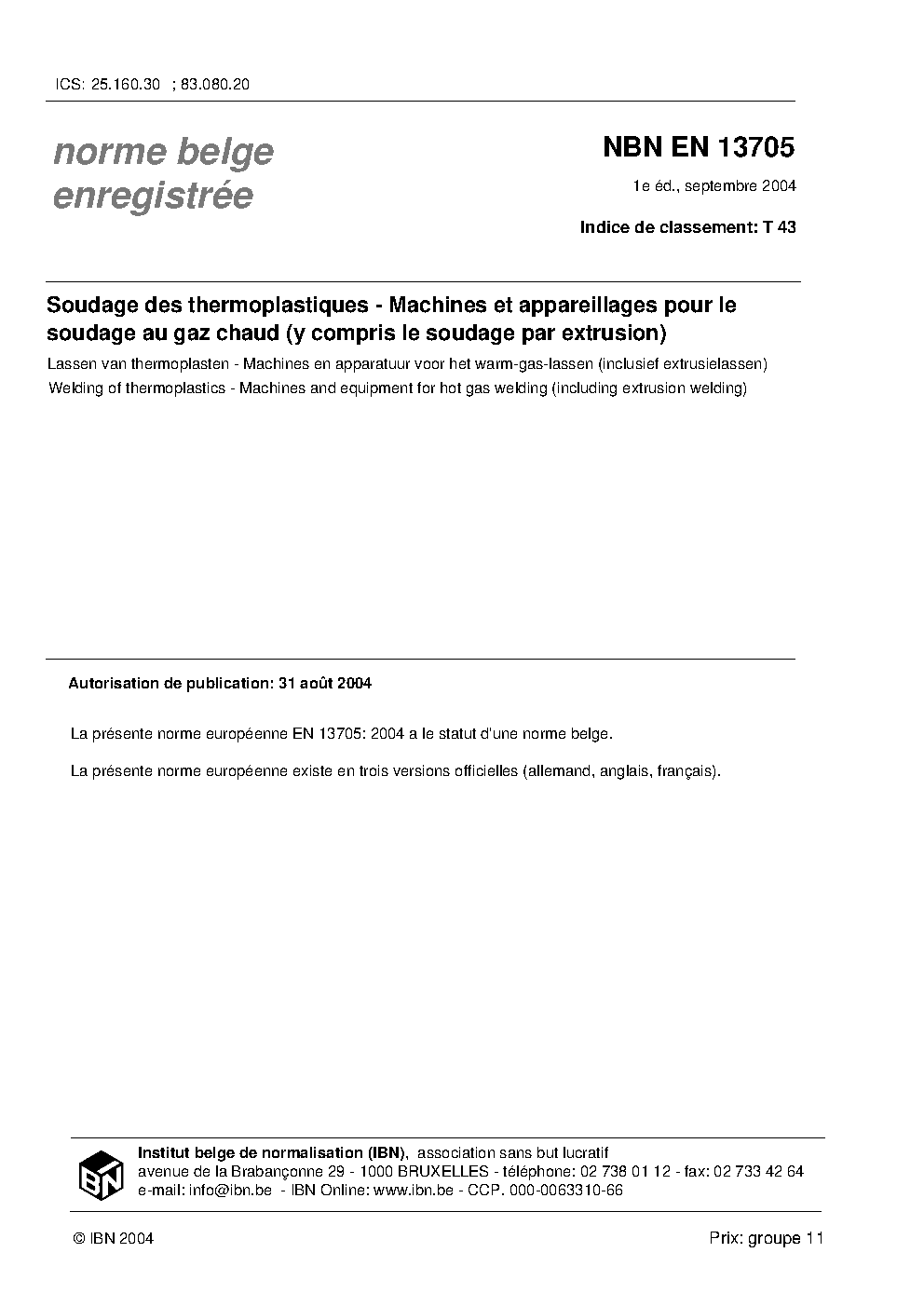 | Publisher | Bureau de Normalisation Belge (NBN) |