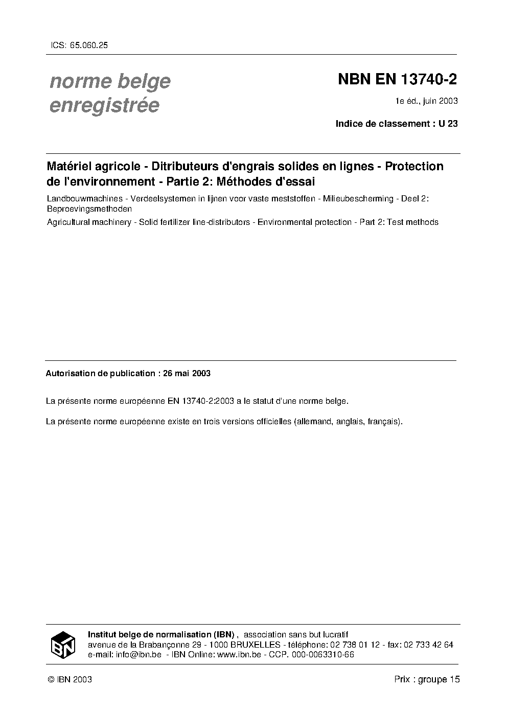 | Publisher | Bureau de Normalisation Belge (NBN) |