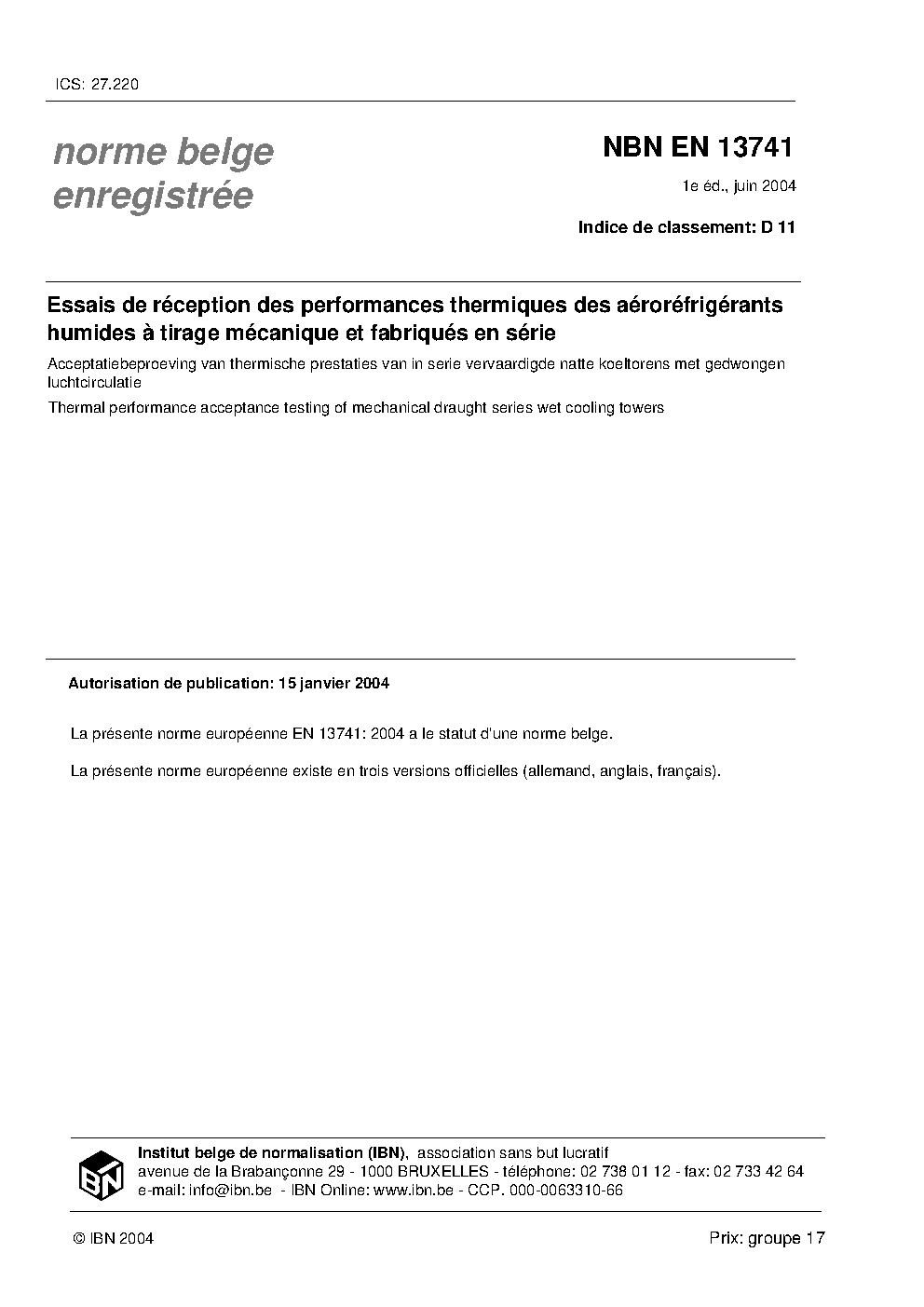 | Publisher | Bureau de Normalisation Belge (NBN) |