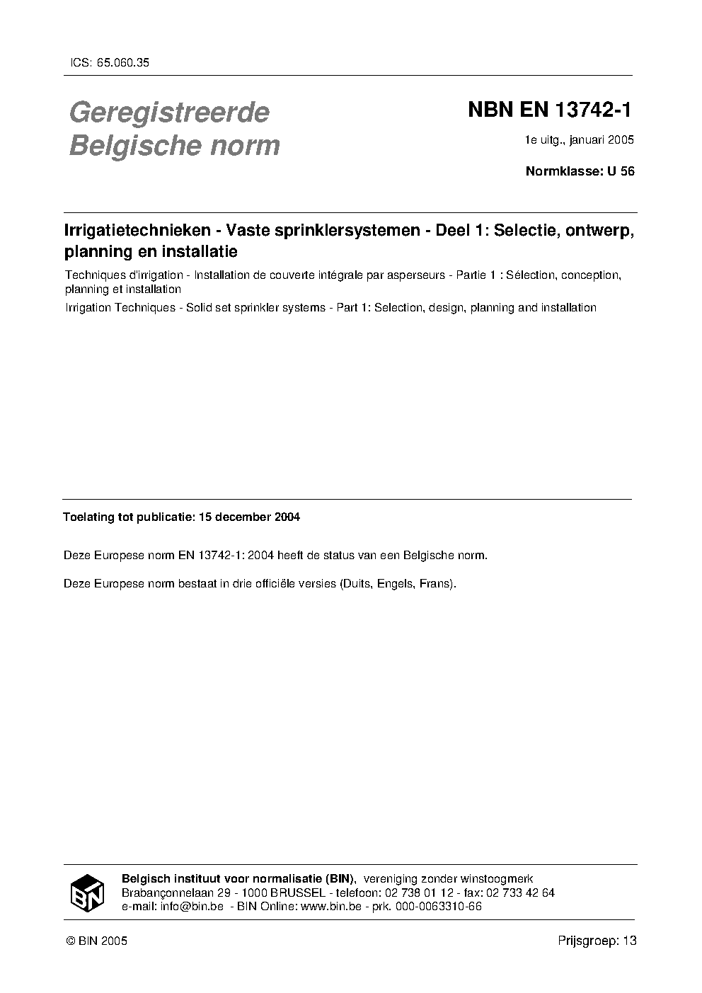 | Publisher | Bureau de Normalisation Belge (NBN) |