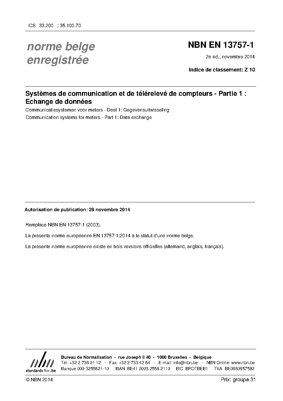 | Publisher | Bureau de Normalisation Belge (NBN) |
