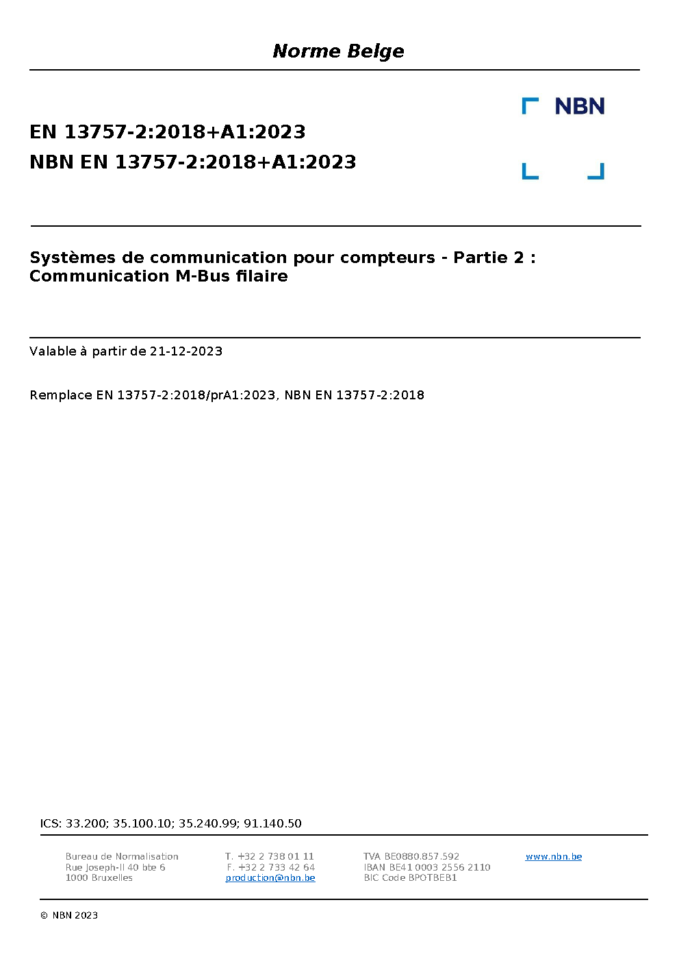 | Publisher | Bureau de Normalisation Belge (NBN) |