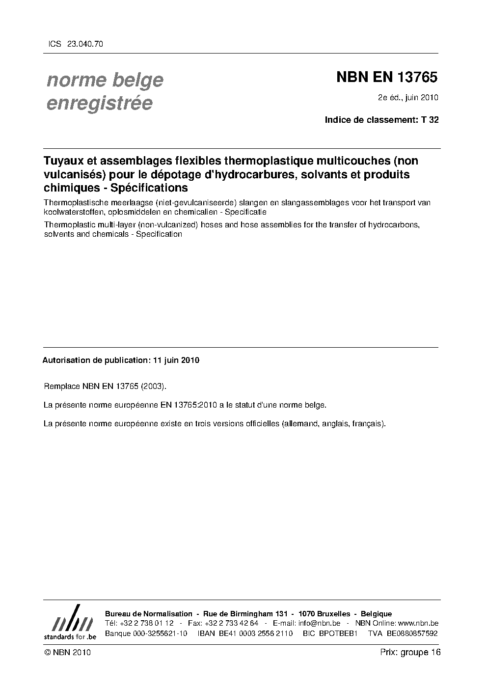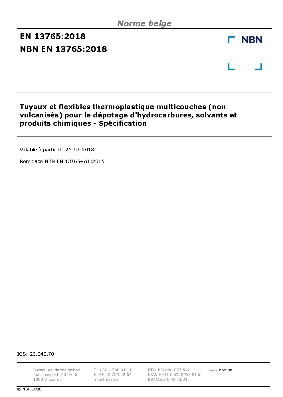 | Publisher | Bureau de Normalisation Belge (NBN) |