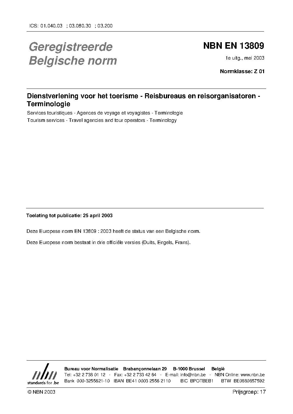 | Publisher | Bureau de Normalisation Belge (NBN) |