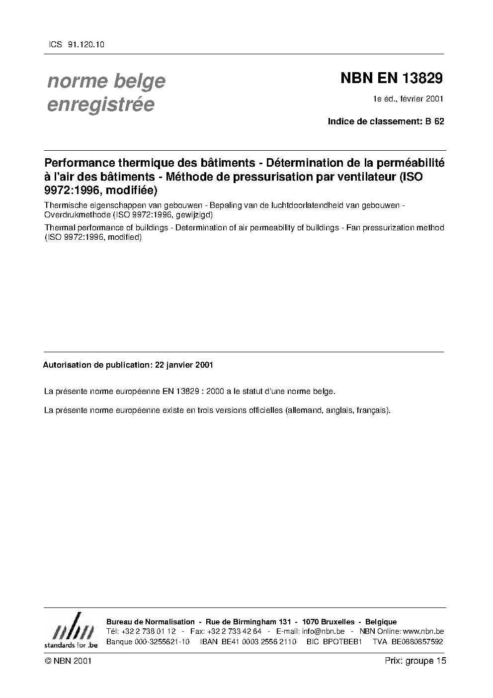 NBN EN 13829:2001