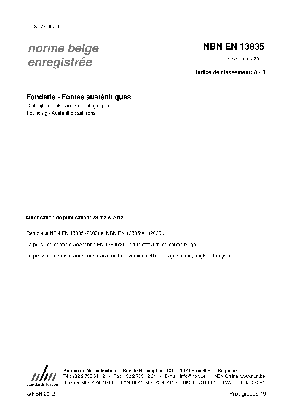 | Publisher | Bureau de Normalisation Belge (NBN) |