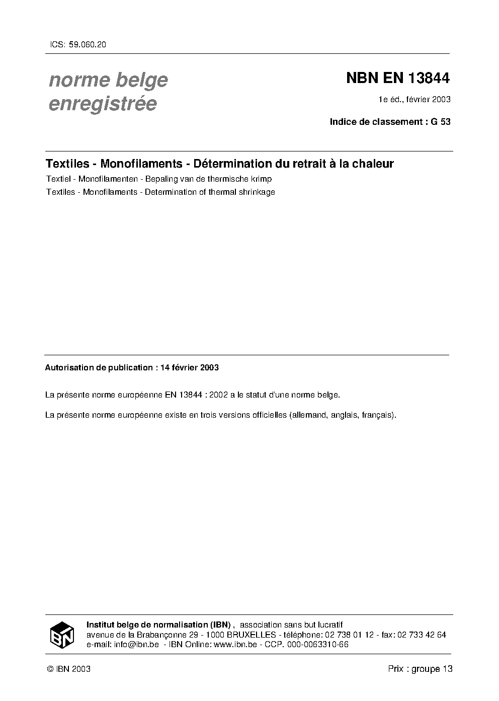 | Publisher | Bureau de Normalisation Belge (NBN) |