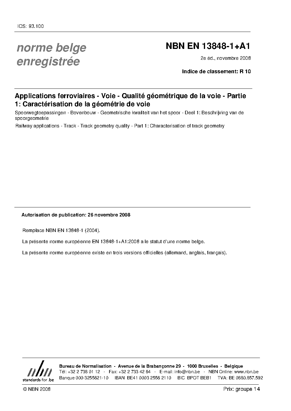 | Publisher | Bureau de Normalisation Belge (NBN) |