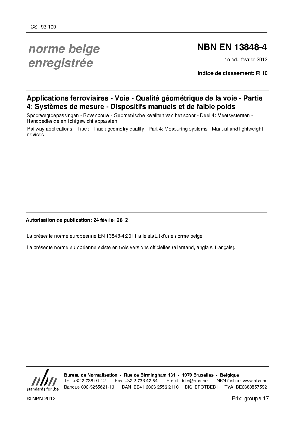 | Publisher | Bureau de Normalisation Belge (NBN) |