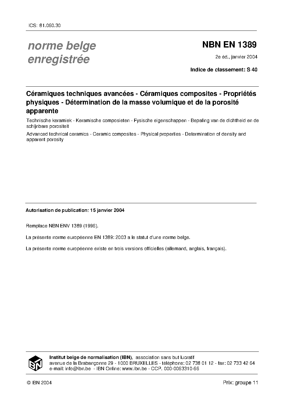 | Publisher | Bureau de Normalisation Belge (NBN) |