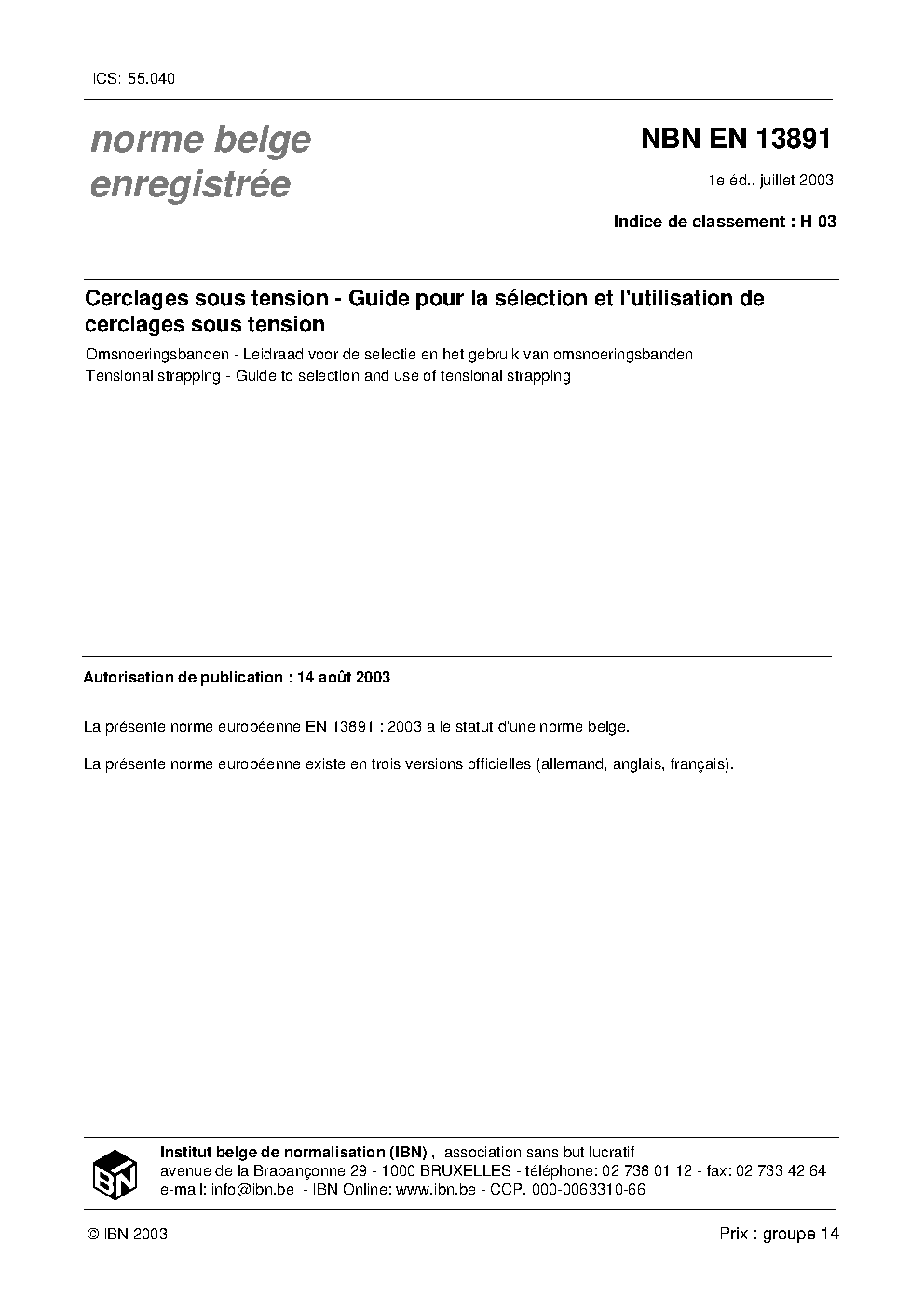 | Publisher | Bureau de Normalisation Belge (NBN) |