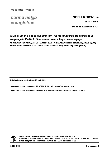 | Publisher | Bureau de Normalisation Belge (NBN) |