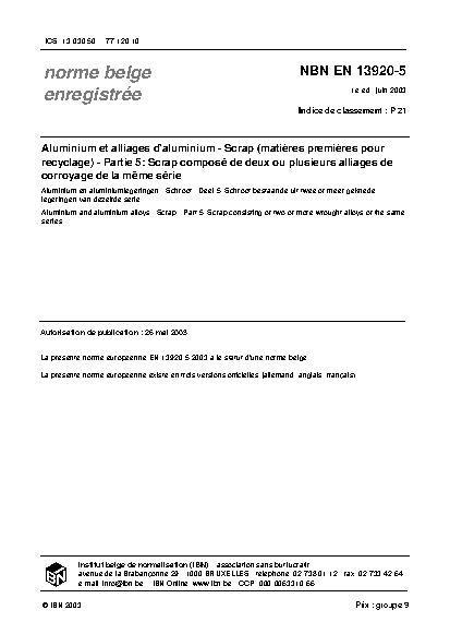 | Publisher | Bureau de Normalisation Belge (NBN) |