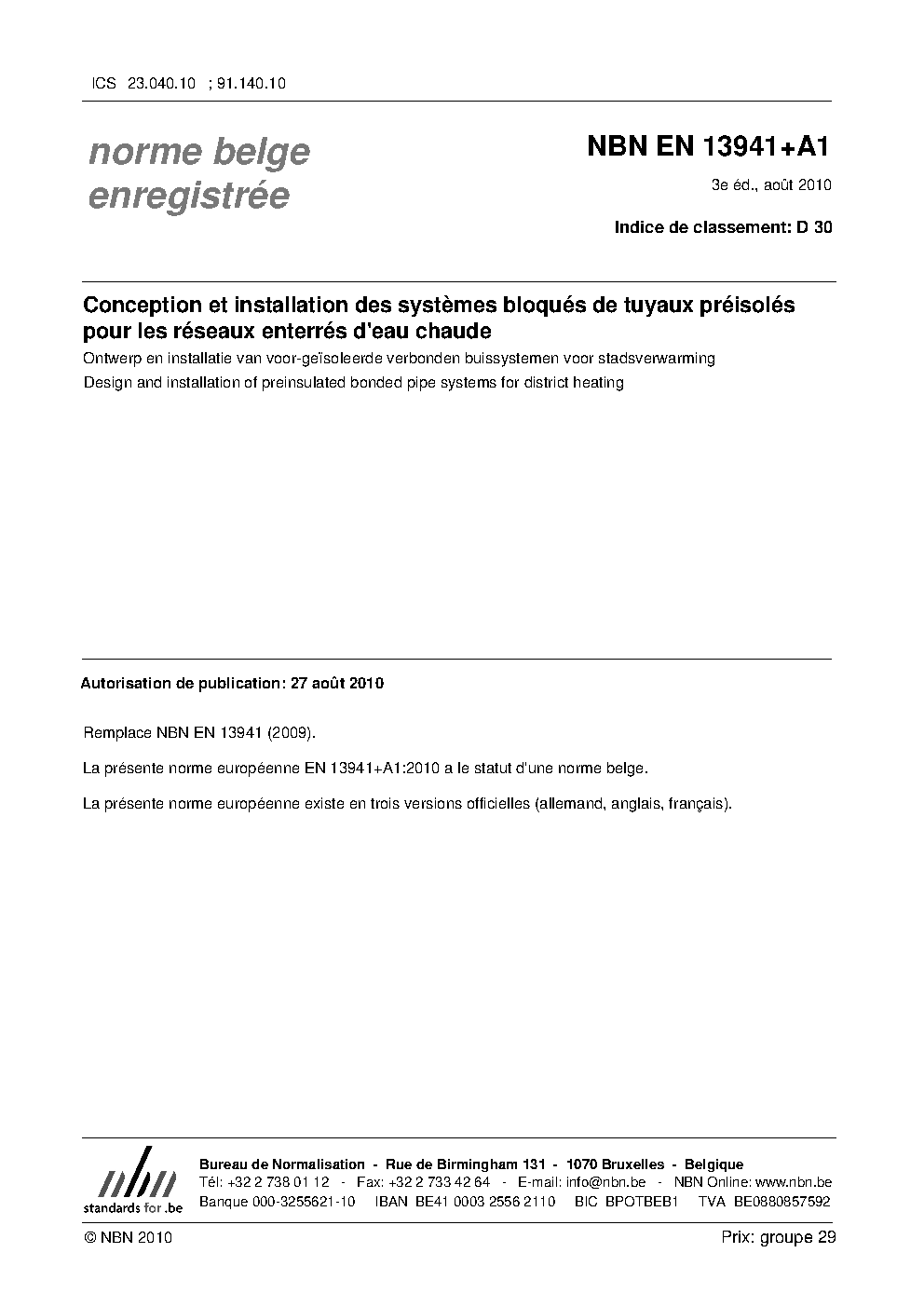 | Publisher | Bureau de Normalisation Belge (NBN) |