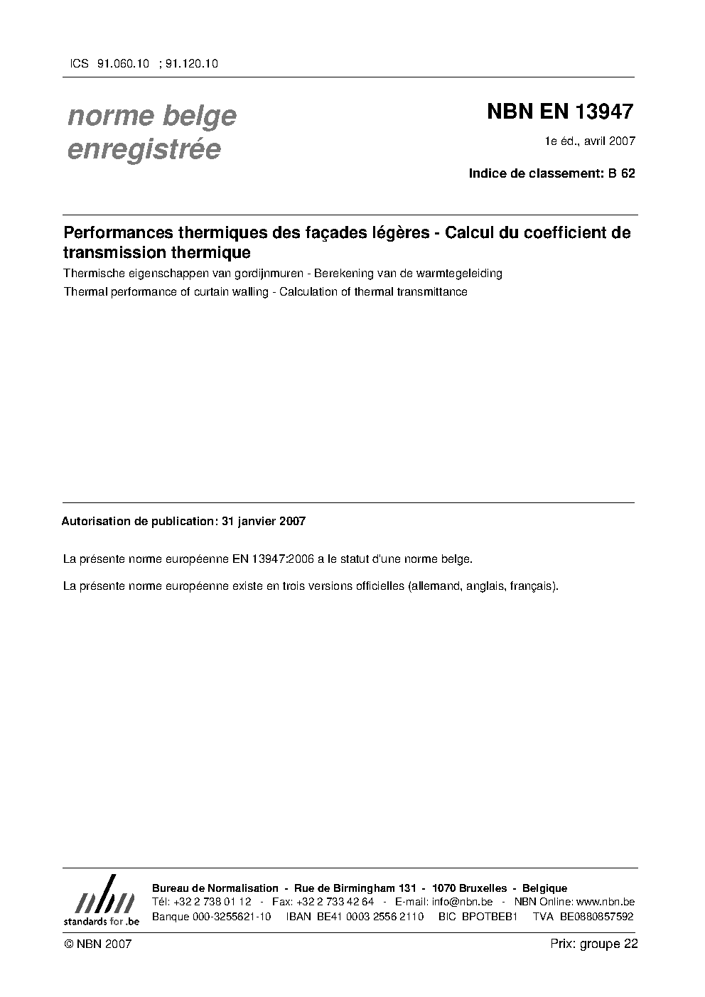 | Publisher | Bureau de Normalisation Belge (NBN) |