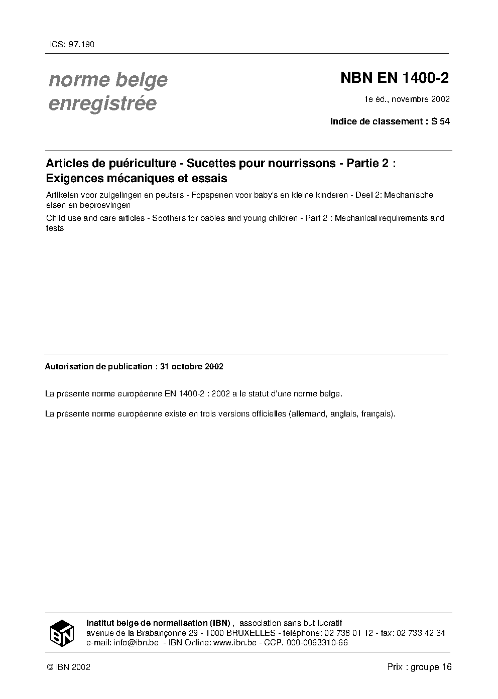 | Publisher | Bureau de Normalisation Belge (NBN) |