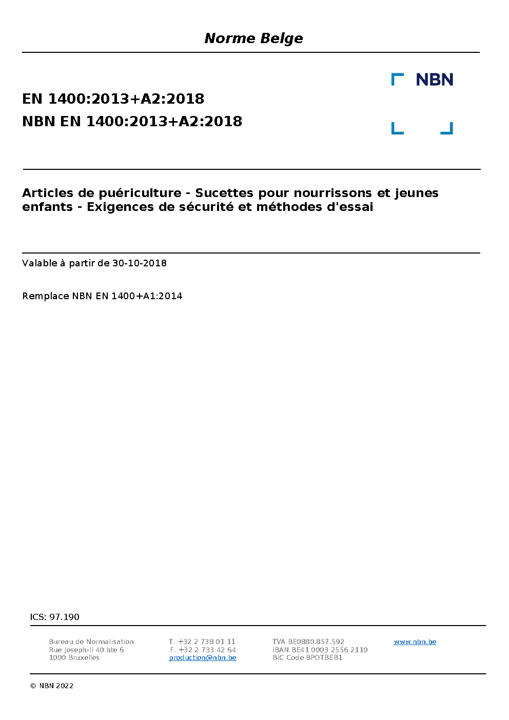 | Publisher | Bureau de Normalisation Belge (NBN) |