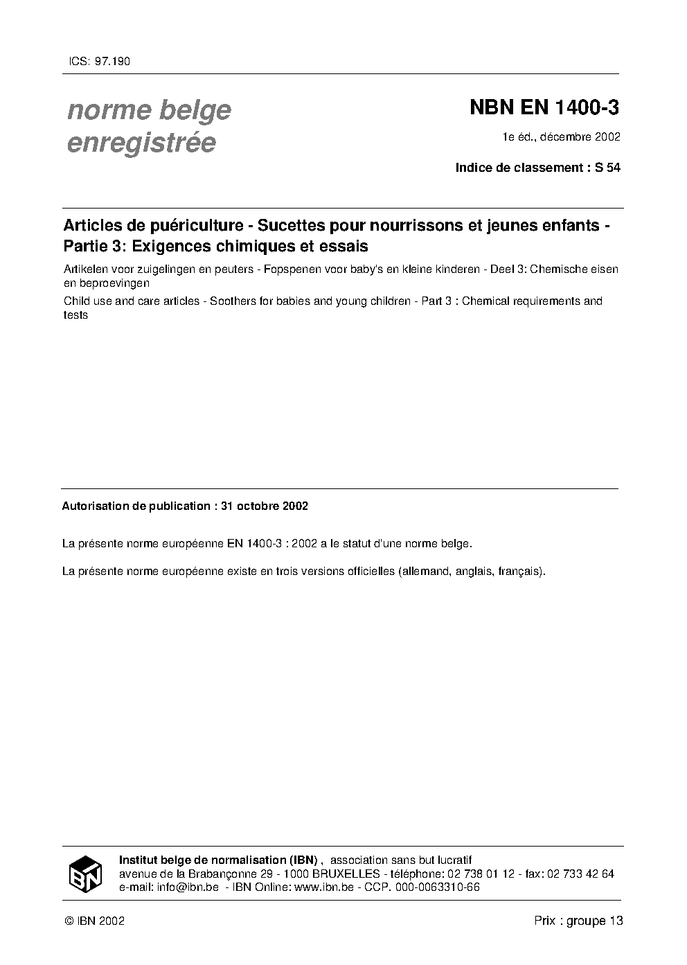| Publisher | Bureau de Normalisation Belge (NBN) |