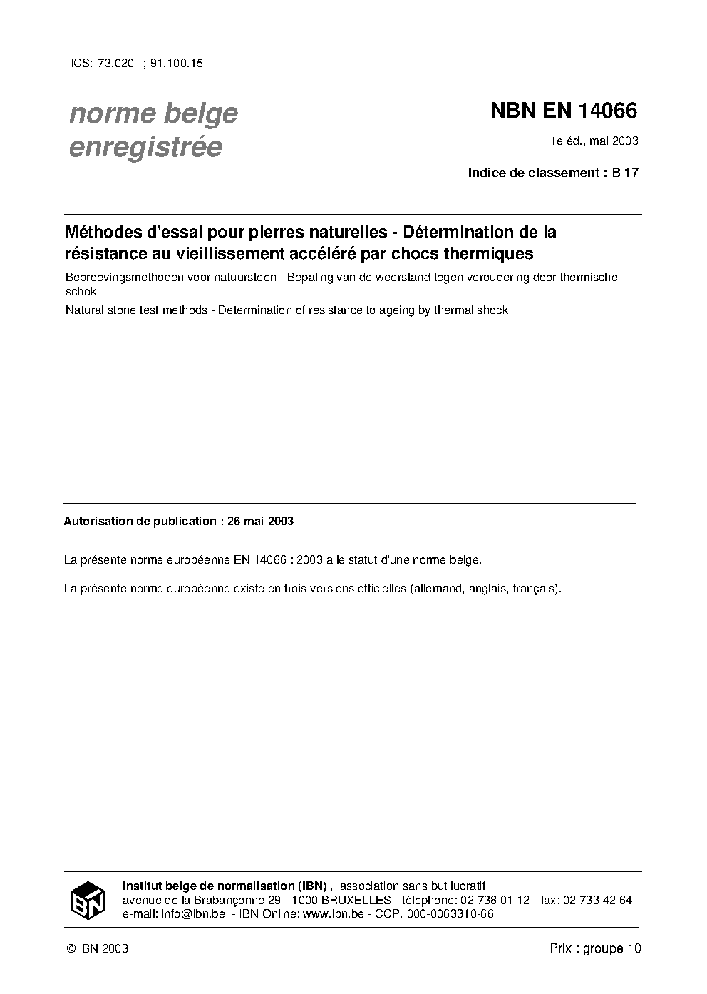 | Publisher | Bureau de Normalisation Belge (NBN) |