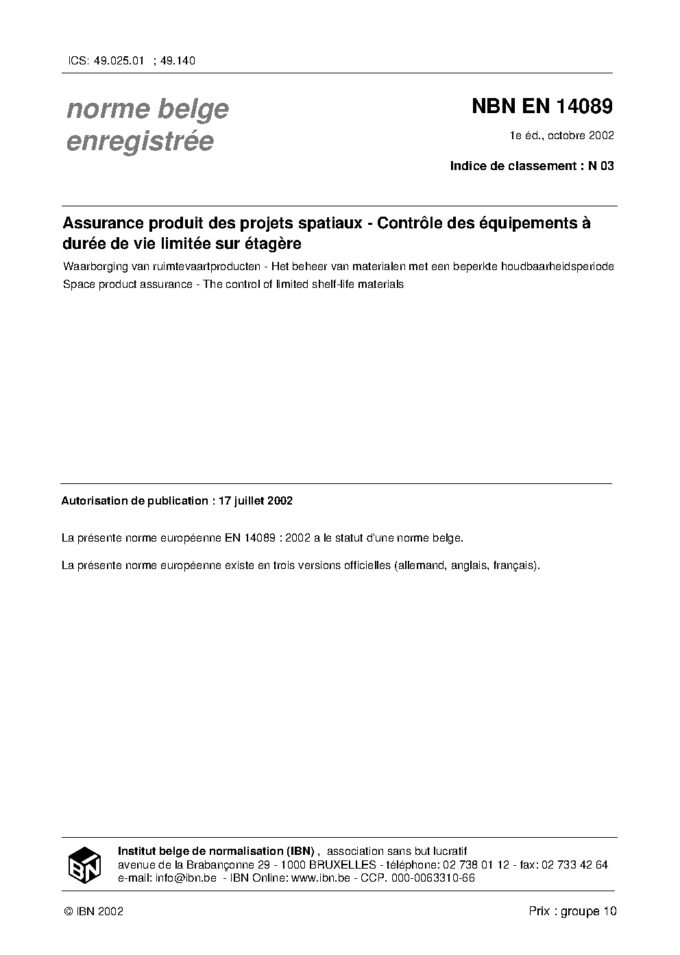 | Publisher | Bureau de Normalisation Belge (NBN) |