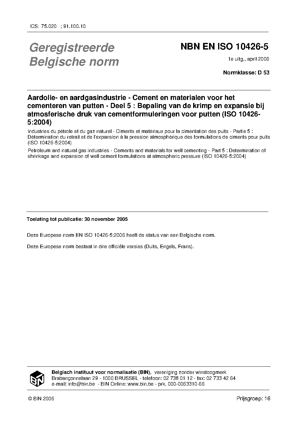 | Publisher | Bureau de Normalisation Belge (NBN) |