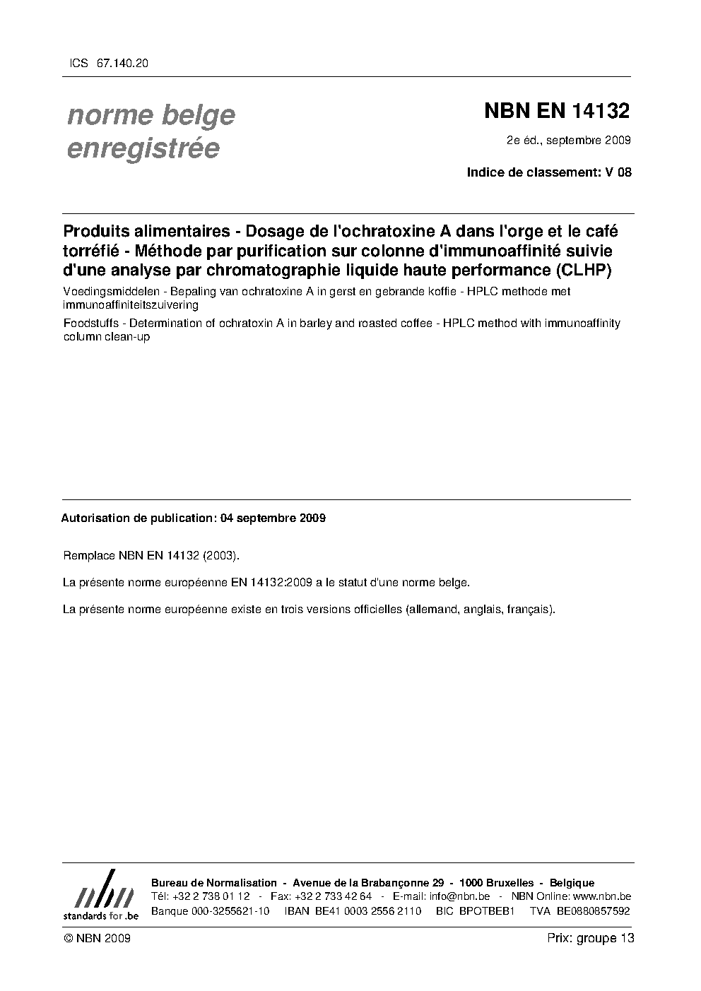 | Publisher | Bureau de Normalisation Belge (NBN) |