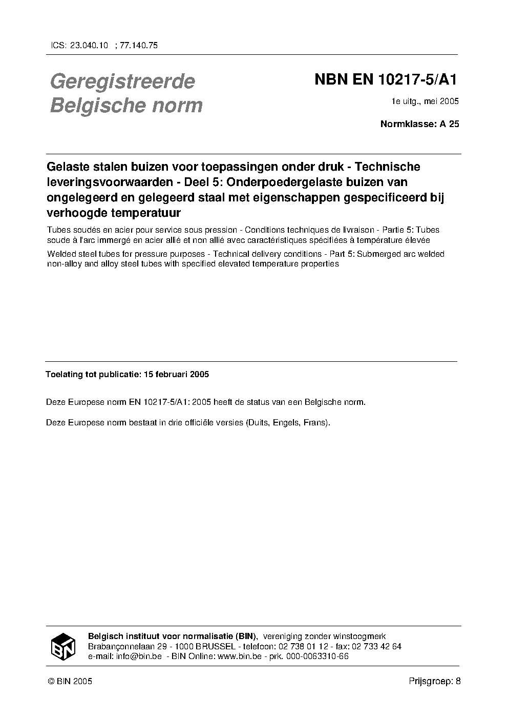 | Publisher | Bureau de Normalisation Belge (NBN) |