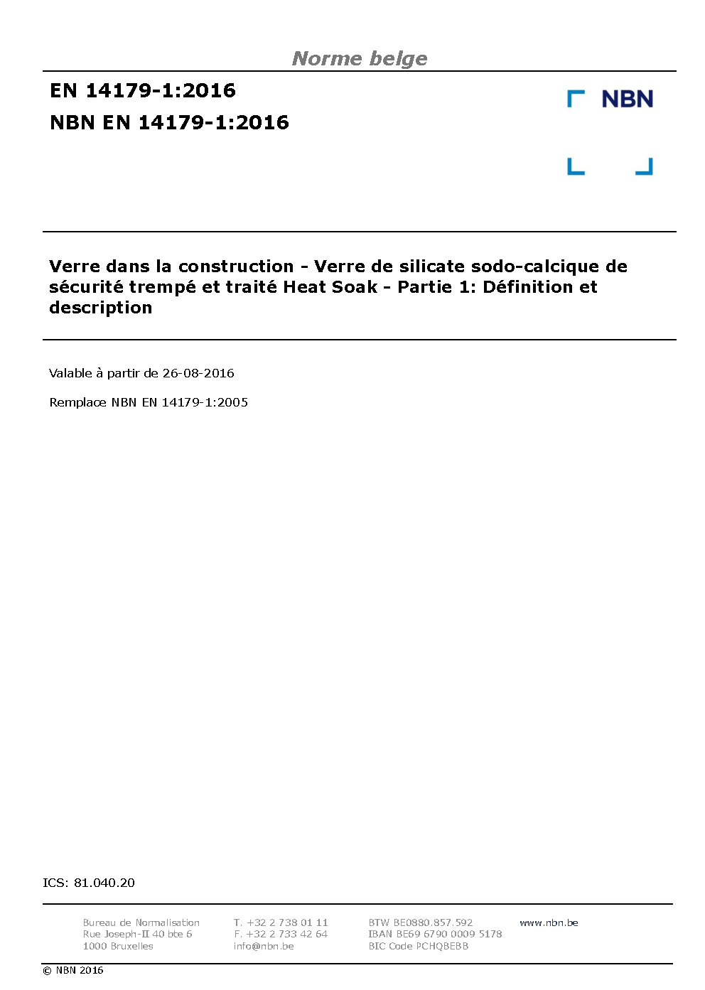 | Publisher | Bureau de Normalisation Belge (NBN) |